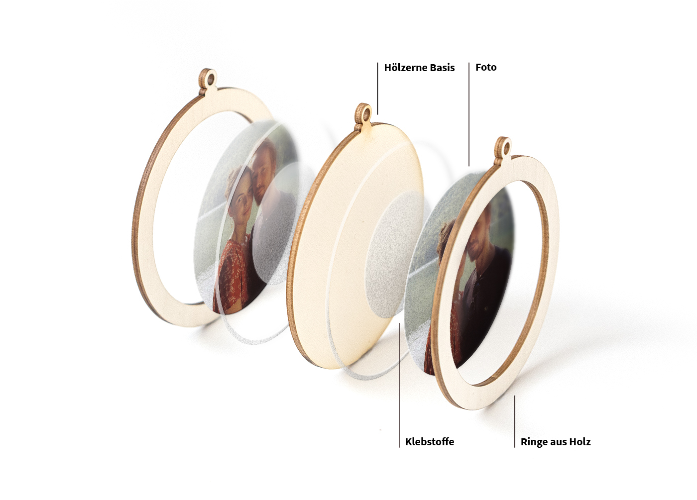 Jedes Memory Ornament wird harmonisch aus sieben sorgfältig entworfenen Schichten gefertigt, um ein exquisites 3D-Andenken zu bilden. Diese einzigartige Zusammenstellung rahmt deine geschätzten Fotos elegant ein und präsentiert sie mit Tiefe und Klarheit.